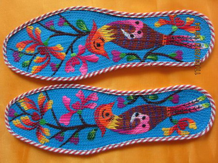 羌族作为我国最古老的民族之一,素有民族活化石之称,拥有悠久的历史和灿烂的文化。羌绣是羌族百姓极具特色的工艺品,是列入羌族非物质文化遗产国家级非物质名录的六项之一,凤县作为羌族故里,保留了原生态的羌绣工艺,无论图案、色彩、构成还是针法都有着千年古羌文化的积淀,蕴涵着浓郁的民族风情,其羌绣鞋垫,图案创建自然,布局错落有致、颜色鲜明,工艺粗狂,形象逼真,真真切切反映了羌族人自然、原始、纯朴的生活状态。