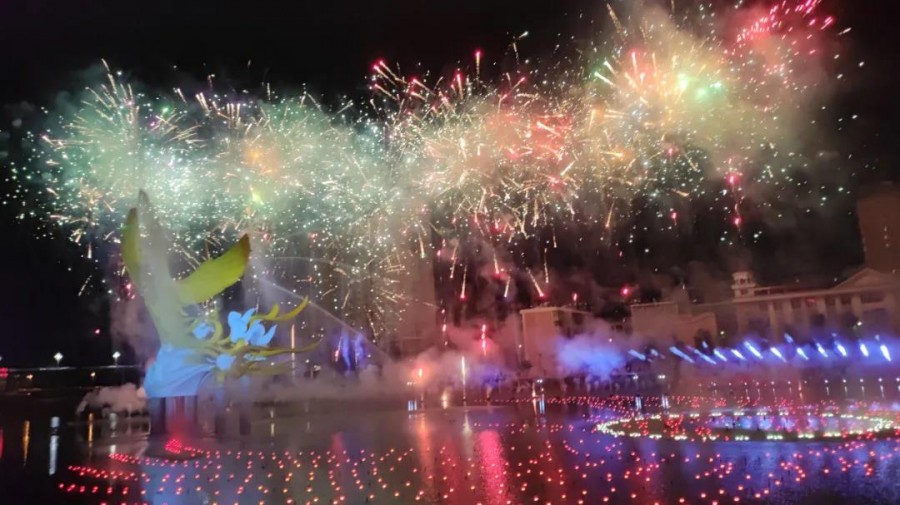伴随着优美的歌声,“逐梦百年•凤舞九天”喷泉音乐会震撼上演,变幻多姿的水柱与炫目的灯光,吸引了在场所有人的目光。同时,在绚丽的舞台效果衬托下,在欢乐的气氛烘托中,青年民族歌手牛悦敏、影视演员胡永涛、网红歌手麦小兜等轮番带来精彩歌曲,台上演员歌声悠扬、舞步翩跹,台下观众频频喝彩,现场沉浸在一片欢乐祥和喜庆的海洋中。